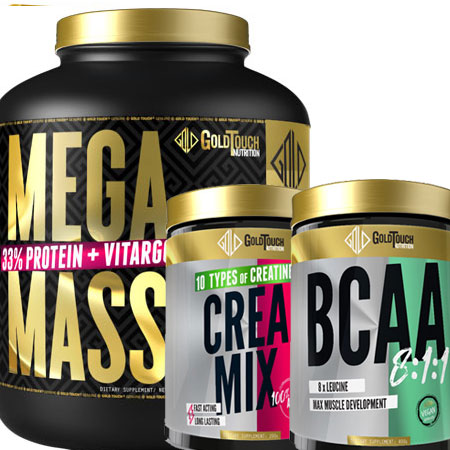 Σύντομη Περιγραφή Πακέτο προϊόντων αποτελούμενο από Gold Touch - Mega Mass 2000 γραμ., Crea Mix 200 γραμ. & BCAA 8:1:1 400 γραμ με στόχο την αύξηση Δύναμης & του Μυϊκού Όγκου.