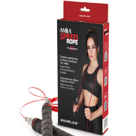 Speed Rope από την AMILA με υψηλής ποιότητας ρουλεμάν, λαβή με επένδυση Grip και το σύστημα μεταβολής μήκους SmartLock