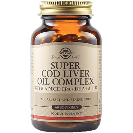 Solgar Super Cod Liver Oil Complex Softgels is a formula rich in essential fatty acids and Vitamin A and Vitamin D. The product is derived from deep-sea, cold-water fish and has been molecularly distilled to remove harmful contaminants. Cod liver is a rich source of essential vitamins including Vitamin A and D, as well as fatty acids.