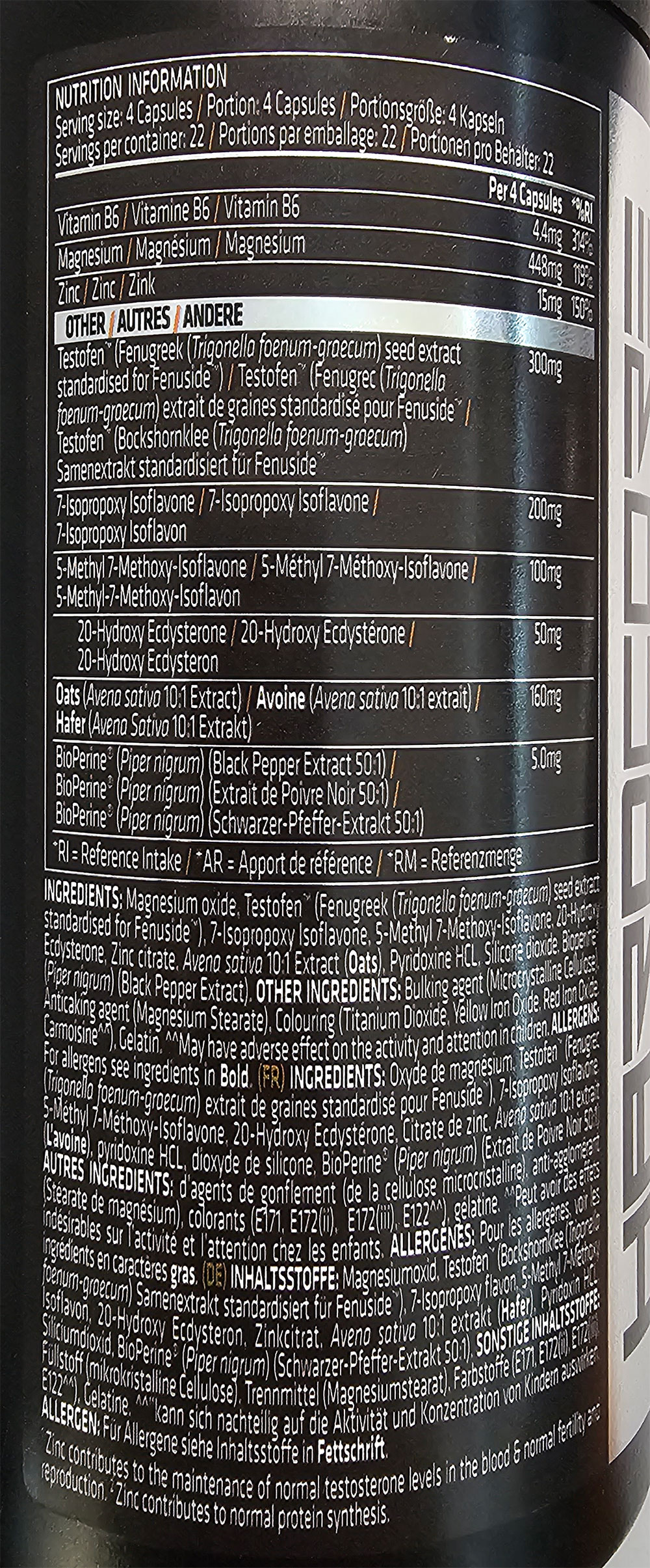 Ένα πρόσθετο μείγμα Ψευδαργύρου, Μαγνησίου και Βιταμίνης Β6 υποστηρίζει επίσης το μεταβολισμό και τη μείωση της κόπωσης, ενισχύοντας τη φυσική απόδοση.