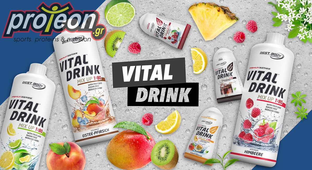 Σύντομη Περιγραφή Το Vital Drink της Best Body είναι ένα συμπυκνωμένο ποτό 1:80 (το 1 λίτρο μας βγάζει 80 λίτρα). Ποτό για ζωτικότητα xωρίς κρυσταλλική ζάχαρη, με Bιταμίνες και L-Kαρνιτίνη για λίγες θερμίδες. Σε απίθανες γεύσεις.