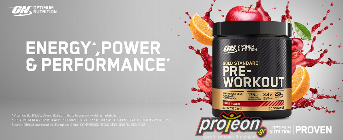 Το νέο Gold Standard Pre-Workout της ΟΝ εξαπολύει ενισχυμένη ενέργεια, εστίαση και υποστηρίζει μία ενισχυμένη αντοχή για να σας βοηθήσει να φτάσετε στο απόγειο της προπόνησή σας, συντρίβοντας το επόμενο σετ σας, κερδίζοντας την τελευταία επανάληψη και επιτυγχάνοντας πραγματικά κέρδη. Όποιοι και αν είναι οι στόχοι σας, πραγματοποιείστε τους όλους με το προ-προπονητικό από την πιο αξιόπιστη μάρκα στην αθλητική διατροφή.