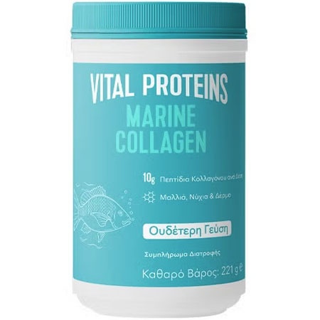 Το Vital Proteins Marine Collagen περιέχει θαλάσσιο κολλαγόνο (κολλαγόνο από ψάρι) σε Πεπτίδια, κατάλληλο για pescatarians. Είναι σε μορφή σκόνης, ουδέτερο στη γεύση και αναμειγνύεται με νερό, καφέ, smoothies, κ.α. Είναι ιδανικό για να ξεκινήσετε την πρωινή σας ρουτίνα, μαζί με ζεστά ή κρύα ροφήματα. Ωστόσο, μπορεί να καταναλωθεί οποιαδήποτε στιγμή της ημέρας.