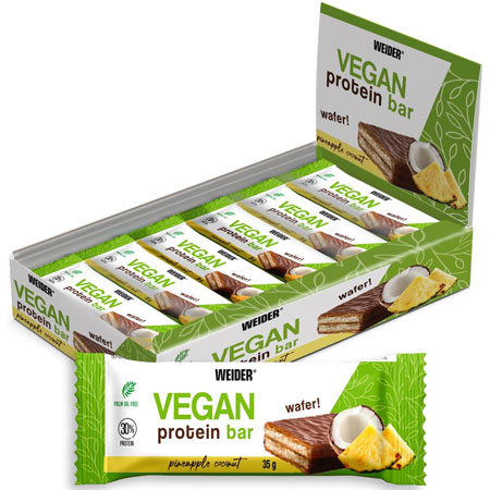 Σύντομη Περιγραφή Η Vegan Protein Wafer Bar από την Weider παρασκευάζεται με πρωτεΐνη μπιζελιού και εξαιρετικά εύπεπτη πρωτεΐνη καστανού ρυζιού προσφέρει την καλύτερη φυτική πρωτεΐνη που μπορείτε να χρησιμοποιήσετε.