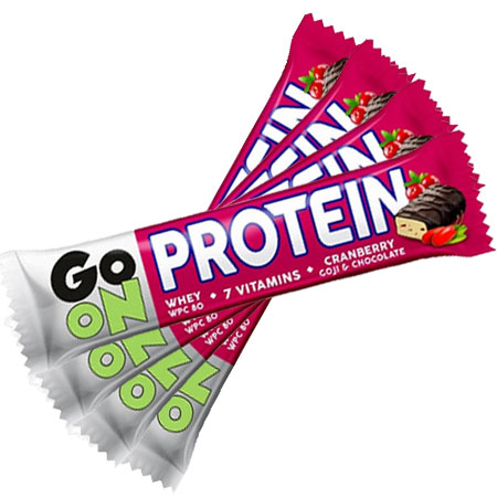 Η πρωτεϊνική μπάρα της Go On είναι πλούσια σε θρεπτική πρωτεΐνη ορού γάλακτος WPC 80, εμπλουτισμένη με Βιταμίνες και παρέχει βασικά θρεπτικά συστατικά στους αθλητές.