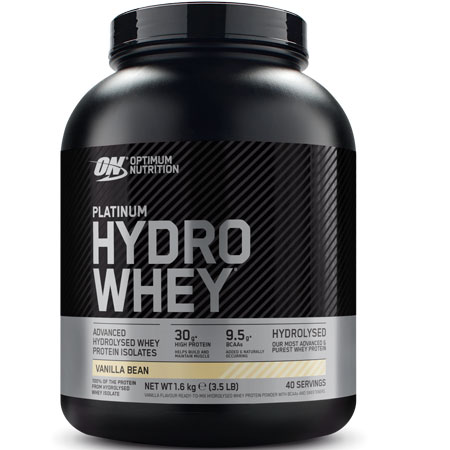 PLATINUM HYDROWHEY™ contains a single-source protein composed entirely of hydrolysed whey protein isolates. Isolates are the purest form of whey protein with no excess fat or lactose. Hydrolysing the isolates breaks the larger proteins down into smaller pieces for quicker absorption. Each (141/142 calorie) shake delivers 30 g of pure whey protein and 9.5g of naturally occurring and added BCAAs.